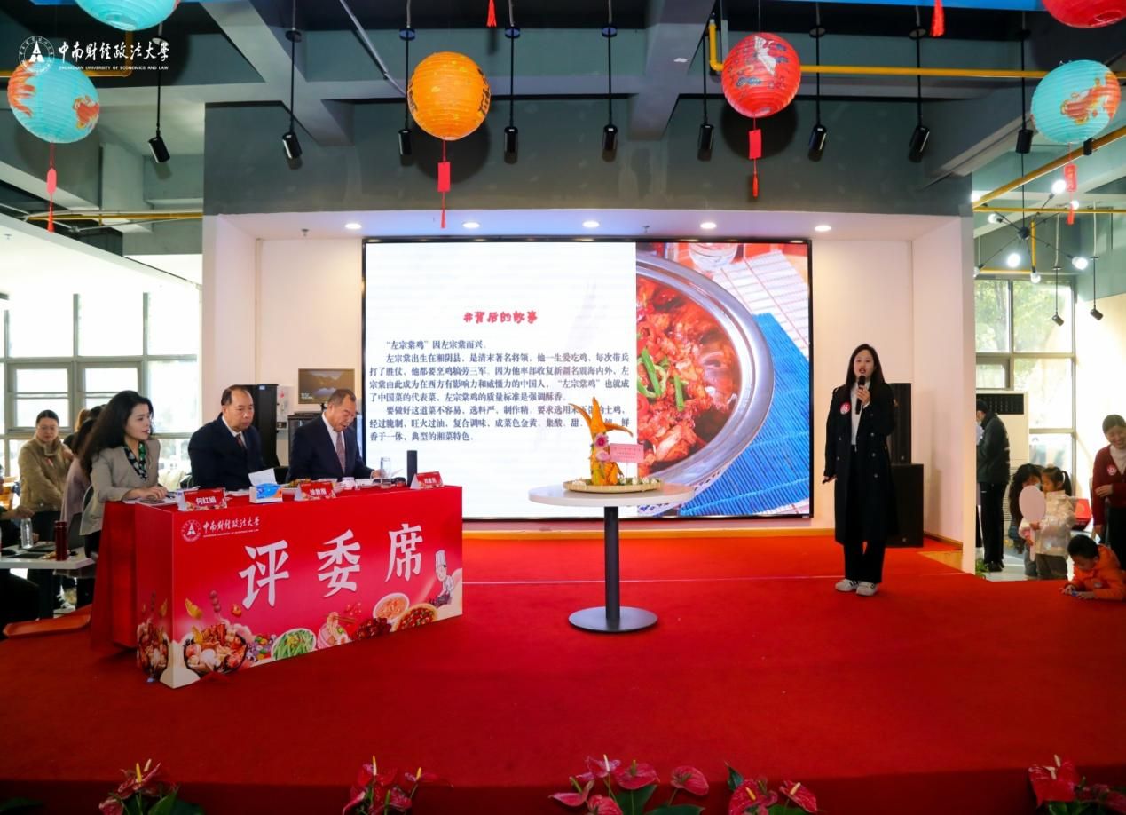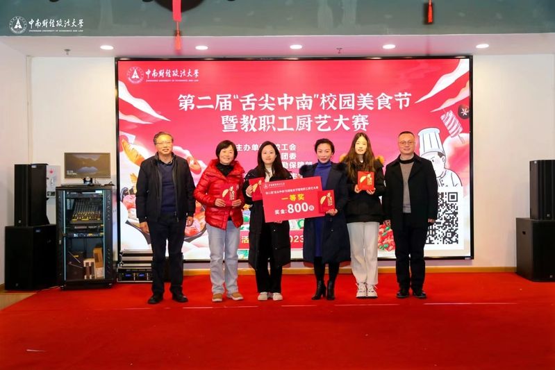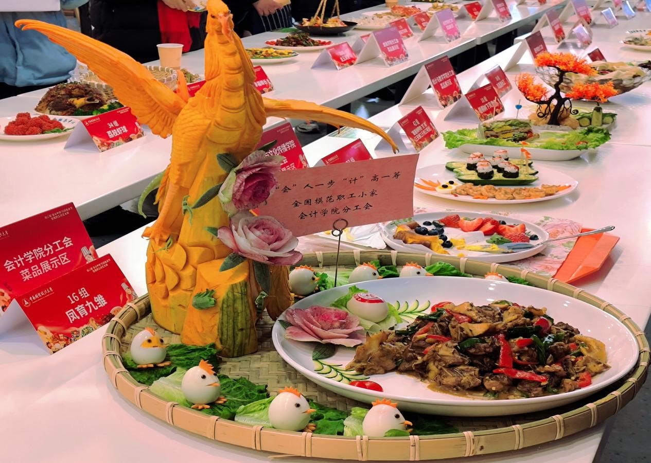 新闻网讯(通讯员 黎玥 张晓睿)为丰富教职工和学生课余生活,增强师生间的情感联系,加强劳动教育,彰显师生风采,12月21日上午,中南财经政法大学第二届“舌尖中南”校园美食节暨教职工厨艺大赛在热闹欢腾的望湖园食堂隆重开幕。会计学院工会代表队凭借出色的厨艺和精心制作的菜品“凤育九雏”,荣获教职工厨艺大赛一等奖。