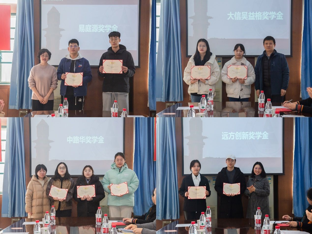 接下来,在颁奖仪式中,在场嘉宾分别为获得远方创新奖学金、中路华奖学金、大信吴益格奖学金和易庭源奖学金的获奖学生代表进行颁奖。