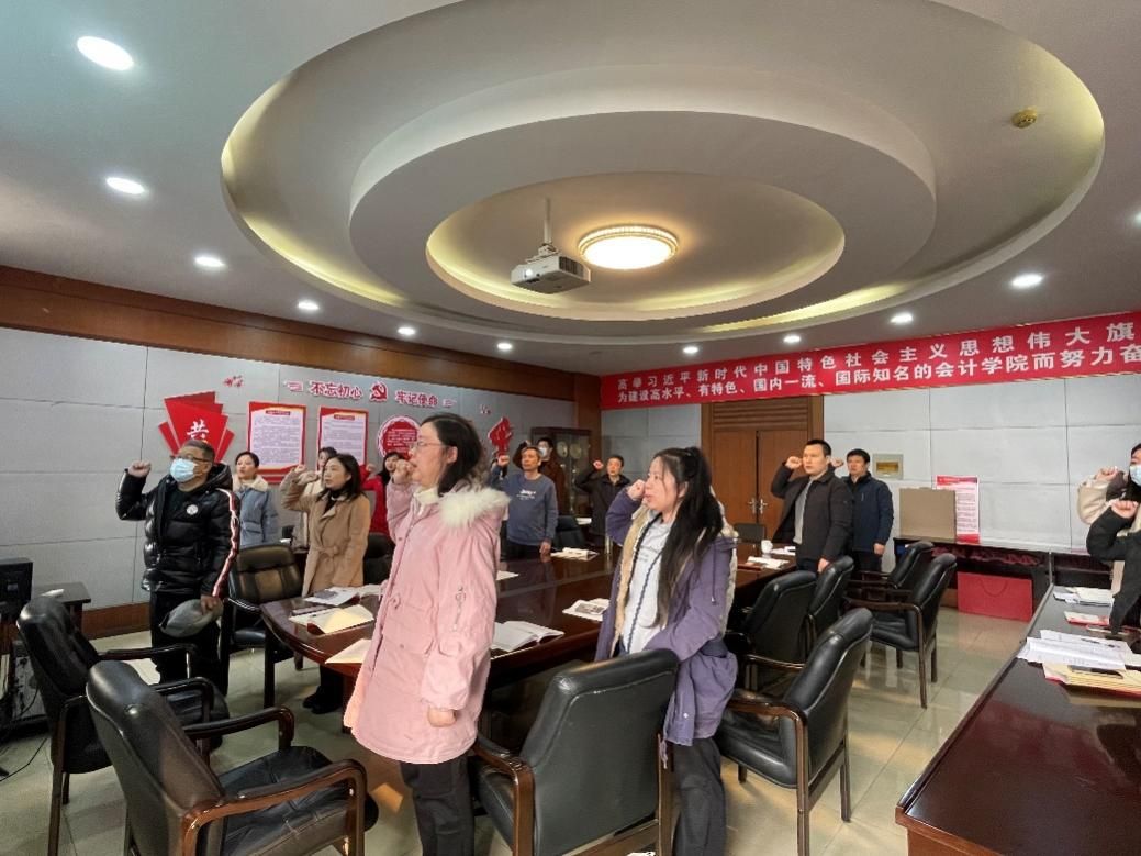 会计学院行政党支部于12月28日上午在文泉南306会议室开展了12月支部主题党日暨2023年度专题组织生活会和民主评议党员活动。活动由支部书记赵侃主持。