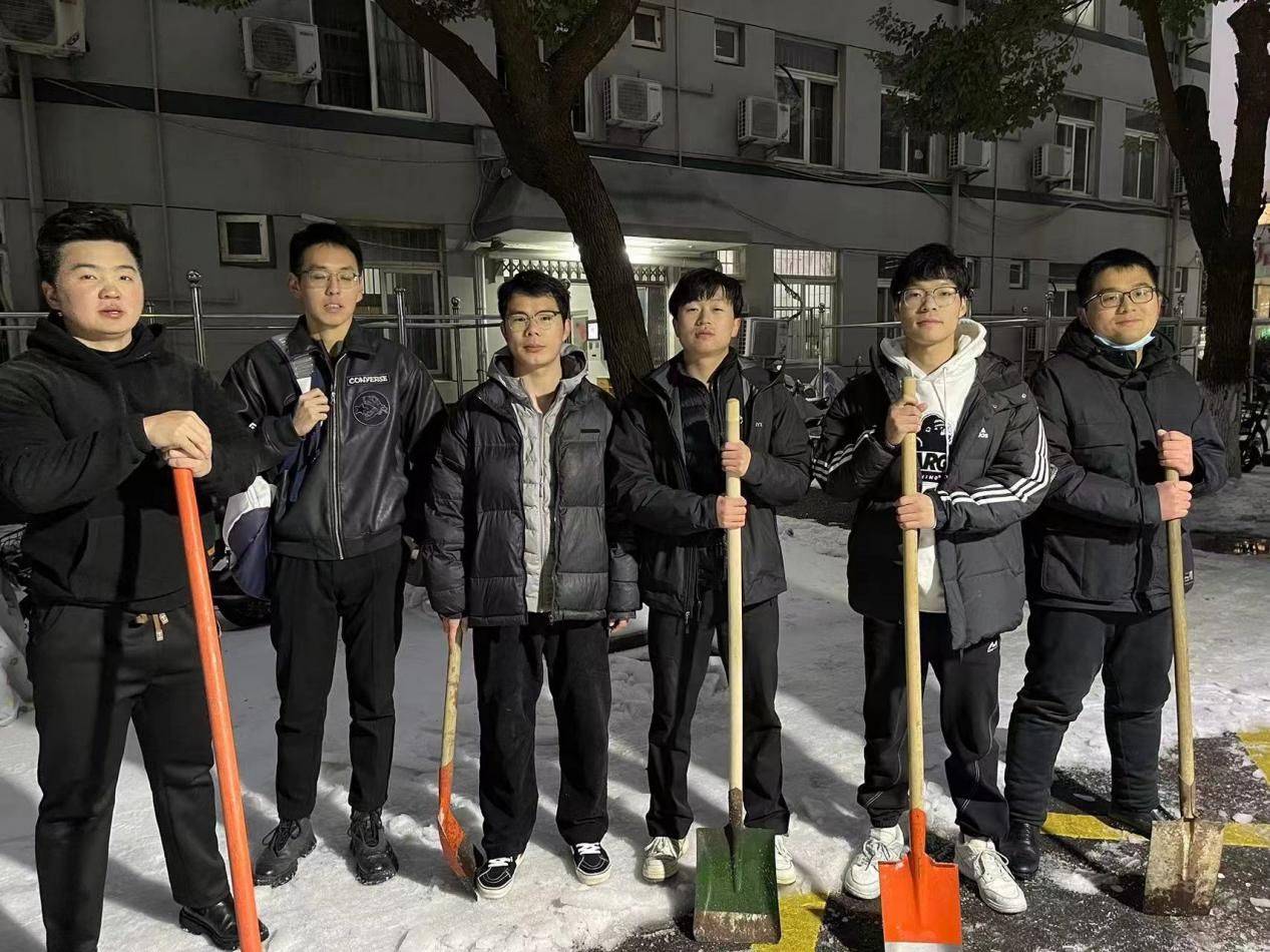 2月23日晚,2022级会计专硕唐宇轩、郭志斌同学和2023级审计学博士研究生王乾坤同学加入学校校园积雪清扫除冰行动研究生志愿者服务队,清扫校园积雪。