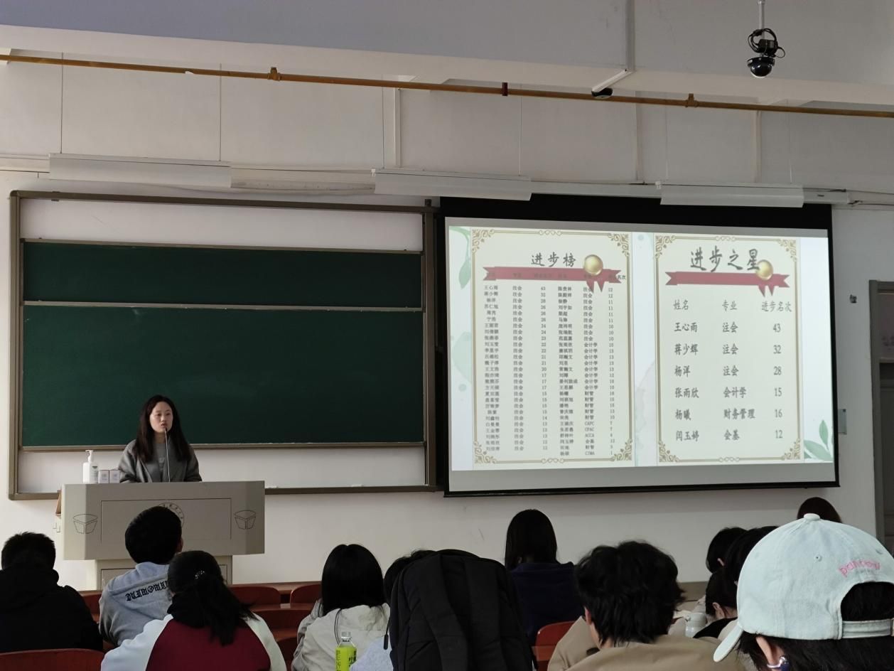 在进步表彰环节,黎老师向我们展示了“进步榜”和“进步之星”,重点表扬了多名学习成绩进步突出的同学,并希望各位同学在学习上不放弃、不言弃,“只要开始努力,什么时候都不算晚”。