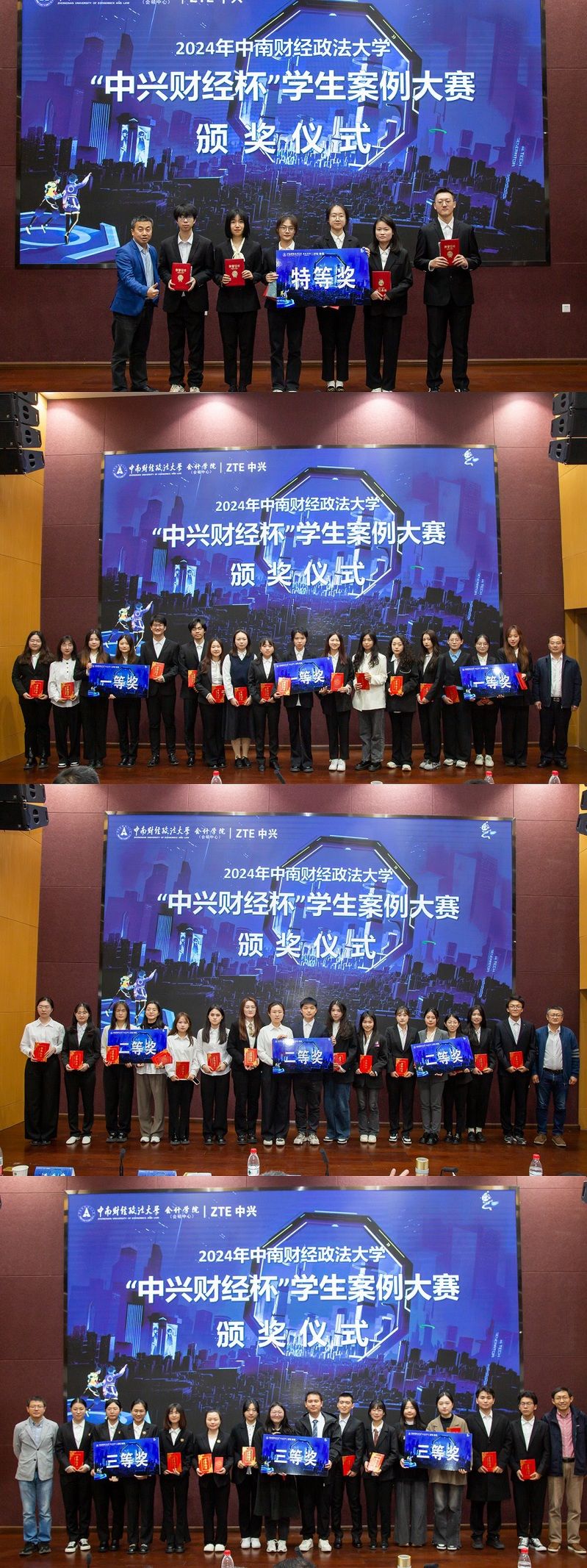 3月24日上午,由中南财经政法大学会计学院和中兴通讯股份有限公司联合开展的“中兴财经杯”学生案例大赛在文瀚楼北报告厅顺利举行,围绕“数智化变革赋能管理会计创新,提升企业核心竞争力”这一主题,十支队伍选手现场分析案例、比拼解决方案、尽展专业风采。