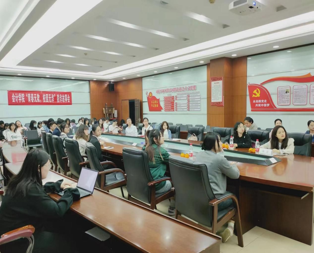 为了让同学们深入了解各类诈骗骗局、各种诈骗手法,增强防范意识和反诈能力,会计学院于2024年3月31日组织举办了“青春无欺,校园无诈”防诈故事分享会。会计学院团委书记赵达骋、本科2022级辅导员黎玥作为评委出席。