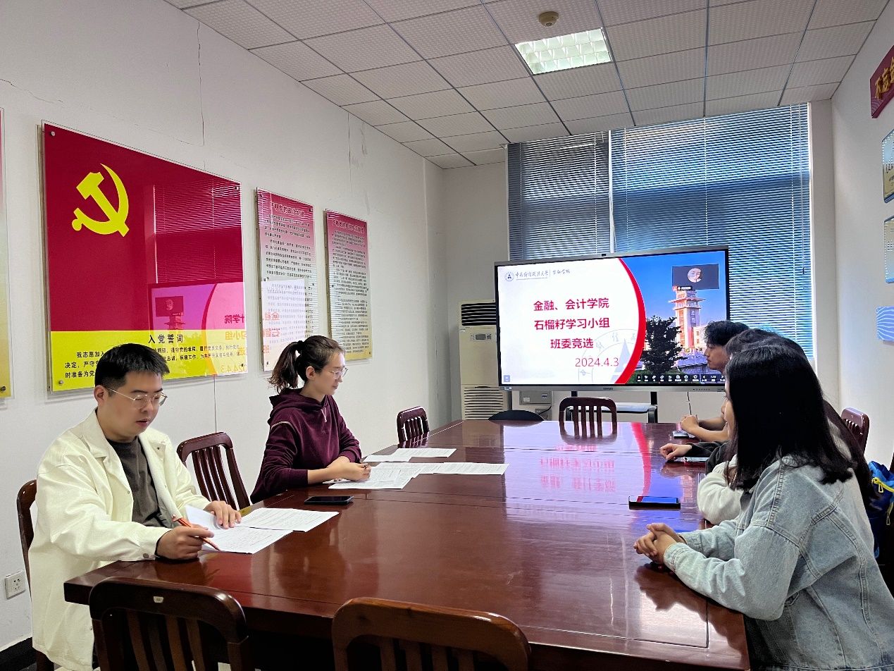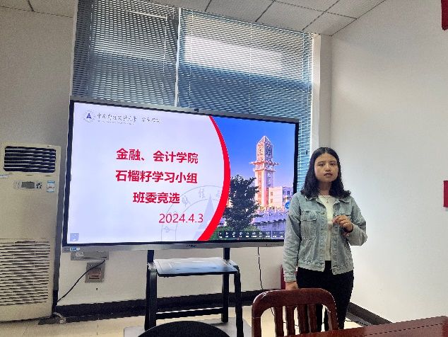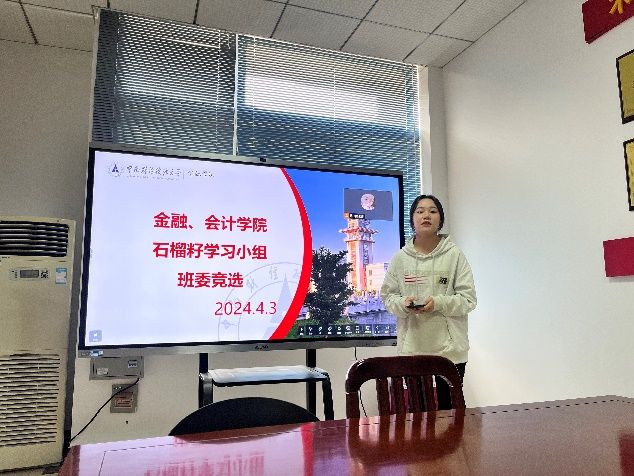 新闻网讯(通讯员 胡牧孜 孔正泽)为扎实做好金融学院、会计学院石榴籽学习小组各项工作,在石榴籽班级组成伊始开好局、起好步, 4月3日,石榴籽学习小组进行了2024年石榴籽班级班委竞选大会。此次大会由金融学院少数民族辅导员莎吉丹姆老师主持,会计学院辅导员胡牧孜老师参加。