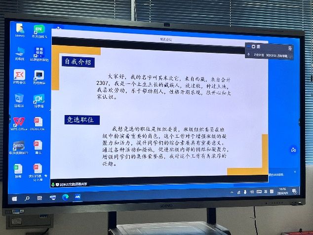本次石榴籽班级班委竞选大会秉持着高标准、严要求,给予每位候选人公正平等的展示机会,保证每个候选人都能顺利地发挥。在竞选过程中,候选人结合PPT进行自我展示和答辩,他们自信大方,充分地展示个人风采,同时对个人能力进行细致剖析,深入思考石榴籽班级内涵的同时,对工作未来的发展做出来规划。
