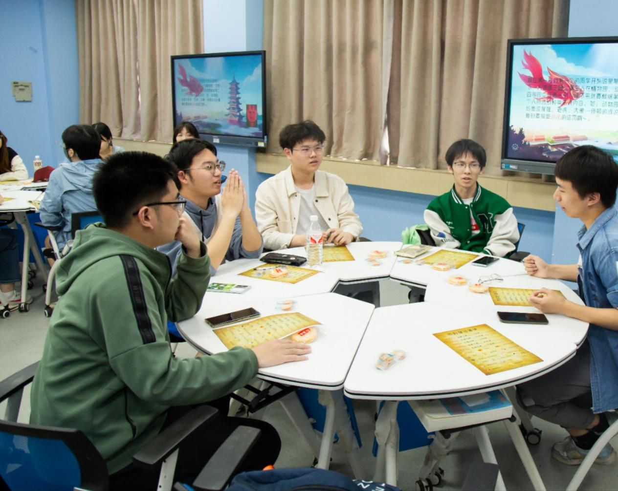 班会伊始,主持人组织大家共同参与“逛三园”游戏,总共进行了三轮比拼,成功将现场氛围调动起来。每轮游戏结束后,主持人奖惩并施,并向同学们科普知识,抛出问题,引发思考,进而引出本次心理班会的主题——探索自我价值观。