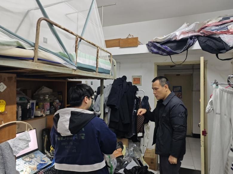 结合春季校园安全重点,辅导员对宿舍卫生、用电安全及消防隐患进行了全面检查,提醒同学们严格遵守宿舍管理规定,杜绝使用违规电器,增强防诈反诈意识,切实筑牢校园安全防线。
