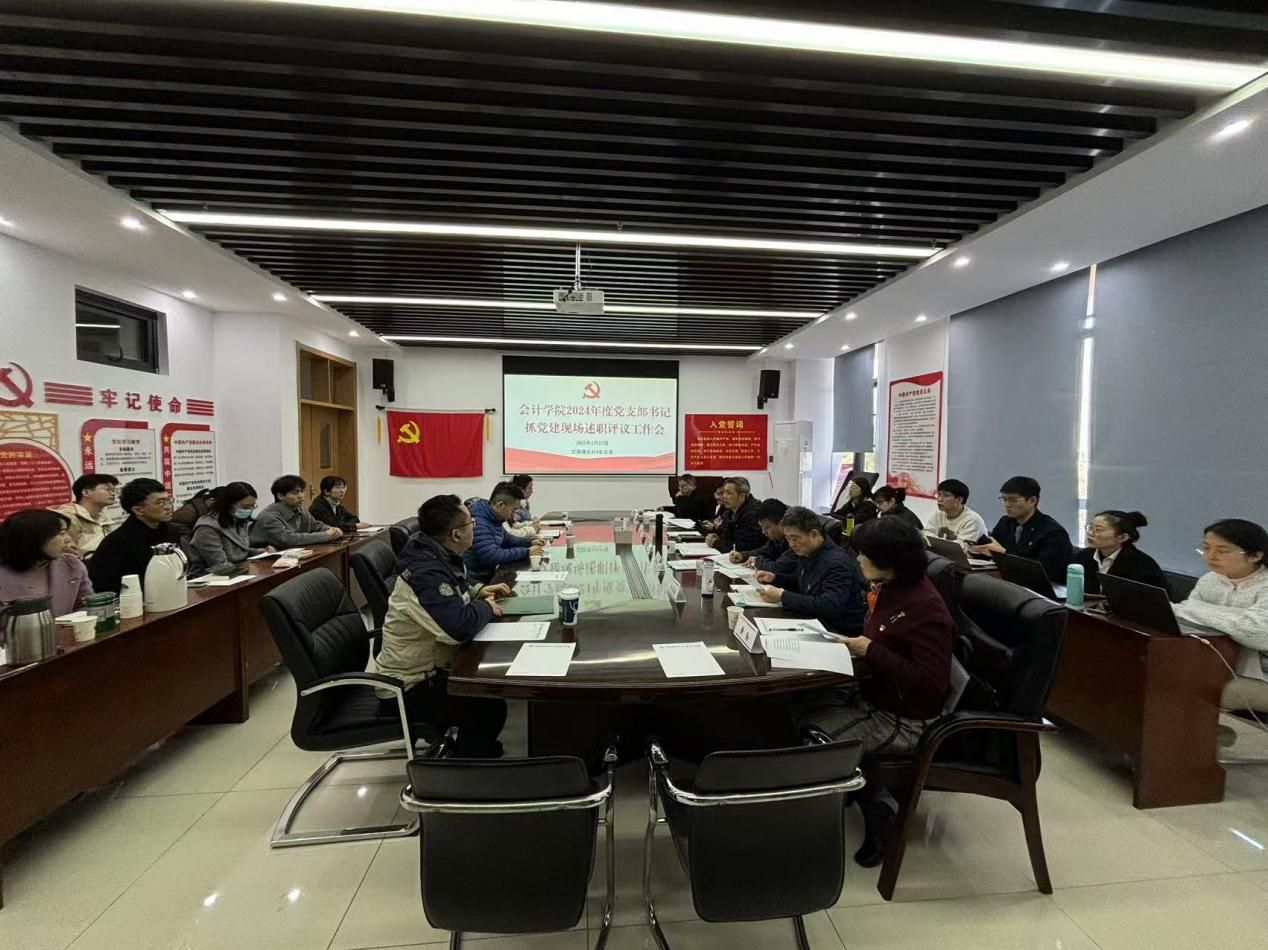 (通讯员 畅雅莉)2月27日下午,会计学院2024年度党支部书记抓党建现场述职评议工作会议在文瀚楼北404会议室召开。学校基层党建工作联络员黄勤老师,会计学院党委书记、副书记,组织员,党支部书记,党员代表等参加会议,会议由院党委书记周勇主持。