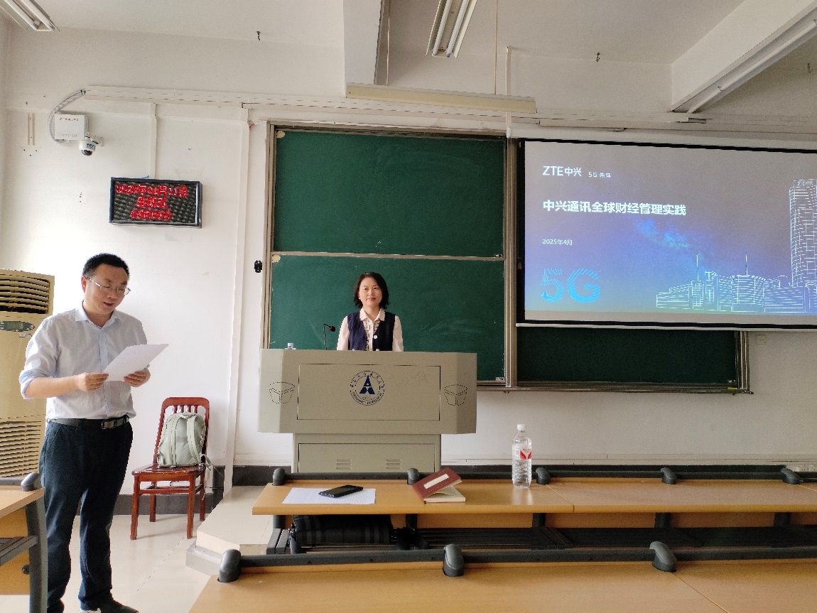 2025年4月11日上午8:00,中兴通讯副总裁王秀红女士应邀在文添楼209为我院(中心)2024级全日制会计专硕研究生讲授《财会审前沿问题研究》课程,本次课程的主题为“中兴通讯全球财经管理实践”,由学院(中心)专硕导师组组长季华副教授主持。